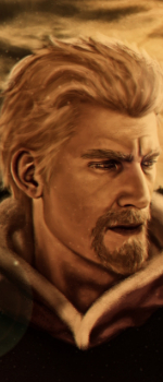 Coté visage, nous avons un homme à la peau durci par les années et les efforts, avec des joues un peu creusés. Un visage dur, vieillit, ridés, bourrus, vous voyez le genre... Ses cheveux blonds sont de pair avec ses yeux bleus couvert par d'épais sourcils.