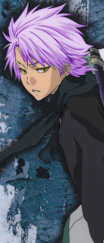Mais la surprise n'est pas fini, un bandana noir me cache le front suivit d'une chevelure violette emmêlée qui me vaut ce regard de jugement de la part des habitants. Je la déteste précisément pour cette raison. Ses longues franges tombent régulièrement dans mes yeux m'obligeant à porter ce bandana qui me tient chaud en hiver, et ce depuis mes 4 ans. Ainsi, je puis vous assurer que à l'exception de mon père et de quelque personnes de la famille Kitto , personne n'a jamais vu le moindre petit bout de peau au dessus de mes sourcils.