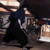 Un crochet frôla sa tempe : il se pencha juste assez pour laisser filer la frappe, puis projeta son épaule en avant pour heurter la poitrine de son adversaire, le forçant à céder un pas. Manjirō grinça des dents, mais repartit aussitôt. Cette fois, il lança un balayage bas, visant les appuis du samouraï.