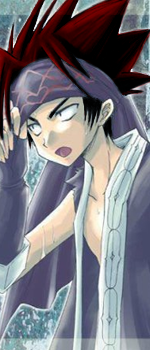 Yuri porte son bandeau de ninja sur son front pour ainsi permettre de coiffer ses longs cheveux rouges, les cheveux de Yuri une fois attachés avec le bandeau de ninja se dressent en pointes sur la tête de Yuri.