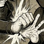 Mai s’engouffra dans l’espace entre eux comme une lame s’enfonce dans une faille. Son bras droit se contracta, sa main entre-ouverte dans cette posture familière, celle d’un ressort prêt à claquer. Elle n’avait pas besoin de plus. Le Teura Uchi fut déclenché à l’instant exact où elle atteignit la portée. Lâchant la flèche qu'elle tenait plus tôt dans sa main. Un mouvement sec, chirurgical, claquant contre le dos de la main tendue de Jiken. Le dos de son propre poing percuta les métacarpiens de son adversaire avec une précision mécanique, le poignet verrouillé, l'impact focalisé.